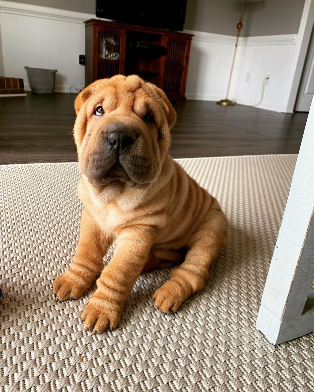 Their iconic wrinkles aren’t just for show—they historically helped protect them during fights or rough work. The coat itself is short, bristly, and rough to the touch, earning the breed its name: “Shar Pei” means “sand skin” in Cantonese.